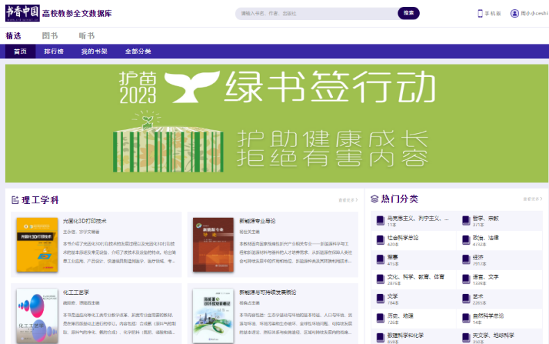 高校教参库平台由湖北中文在线数字出版有限公司研发,平台提供电子图书5万多册,上线图书全部经过正版授权,数据库覆盖“文、理、工、医、农、林、管”等重点学科,着重发展“电子信息科学”“经济学”“外国语言文学”“航空航天”“生物学”等热门、前沿学科。500+家出版社出版的优质图书,包括人民出版社、人民文学出版社、电子工业出版社、海豚出版社、清华大学出版社等中央级出版单位。覆盖中图法22大类。年更新率达到20%。包括哲学、经济学、法学、教育学、文学、历史学、理学、工学、农学、医学、军事学、管理学、艺术学等。既有薛斐、李煜晖、纪涵邦、王传霖等名家作品,也有外国经典教材、经济管理医学卫生等经典板块。平台书籍采用中图法分类和学科法分类,结合国家教育政策要求及课本推荐罗列可读物书单。所有资源无复本限制、无借阅期限制。为高校教育院校提供个性化界面,师生可终身享受数字阅读服务,并可随时翻看以前的阅读笔记,留下美好阅读回忆。