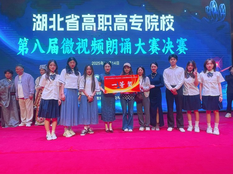 比赛现场,学校播音与主持专业教师冯麟然担任指导,2024级播音与主持专业学生杨嘉文、高烽升朗诵及微表演,2025级五位同专业学生参与舞蹈。团队凭借出色的创意与表现力,以97分的全场最高分夺得桂冠。