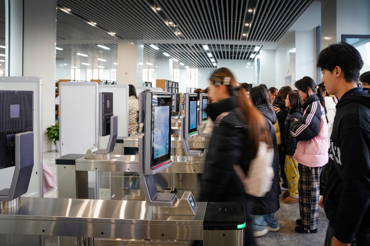 科技为翼,书香润心。新馆秉持“实用与舒适并重”的理念,构建起全流程高效智能的服务闭环,让科技感与书卷气在墨香中深度交融。入馆采用“人脸识别”或“校园一卡通”核验,实现无接触快速通行,既便捷又安心;图书借阅彻底告别传统排队等候,自助借还机支持人脸识别等多模态验证,指尖轻触、人脸一扫,不到一分钟就能完成整套借还流程。