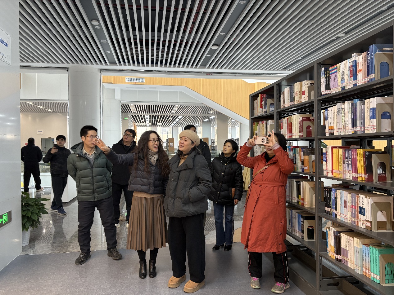 (通讯员 吴振寰)1月27日下午,华中农业大学图书馆周迪馆长、张柱红副馆长与夏仁副馆长带领馆内骨干一行9人,专程前往我校智慧图书馆开展参观调研工作。此次调研的核心目的,是为华中农业大学文科楼改造图书馆项目汲取宝贵经验,重点围绕馆藏空间规划、功能区域布局以及读者服务场景优化等方面,学习借鉴我馆的先进实践做法。我校图书馆黄京馆长携各部门主任及馆员代表,对调研团队给予了热情接待,并全程陪同参观,与对方开展了深入的交流探讨。